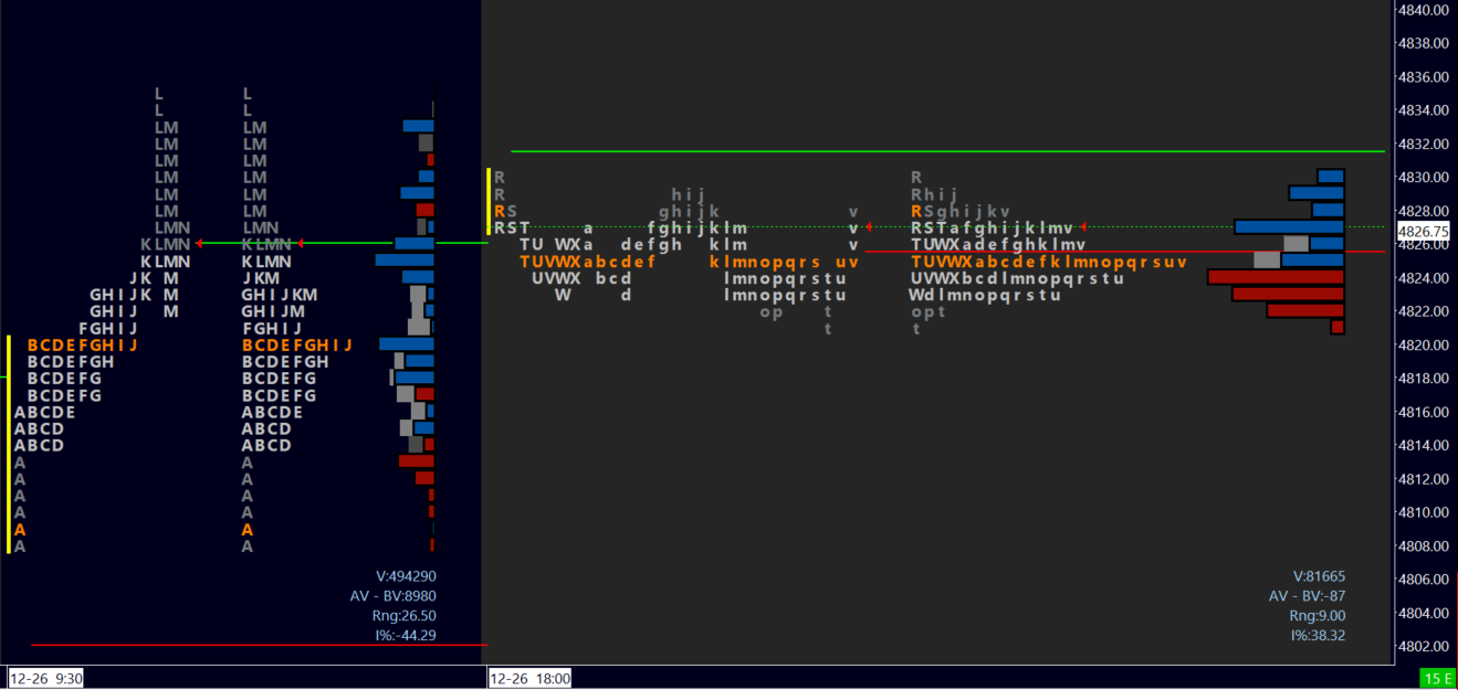 Pivot 4826. Plan largely unchanged as we continue to grind slowly up. We saw around half a million contracts traded yesterday, remember that these low volume environments can be conducive to outsized moves if heavy volume appears at either side of the distribution.
