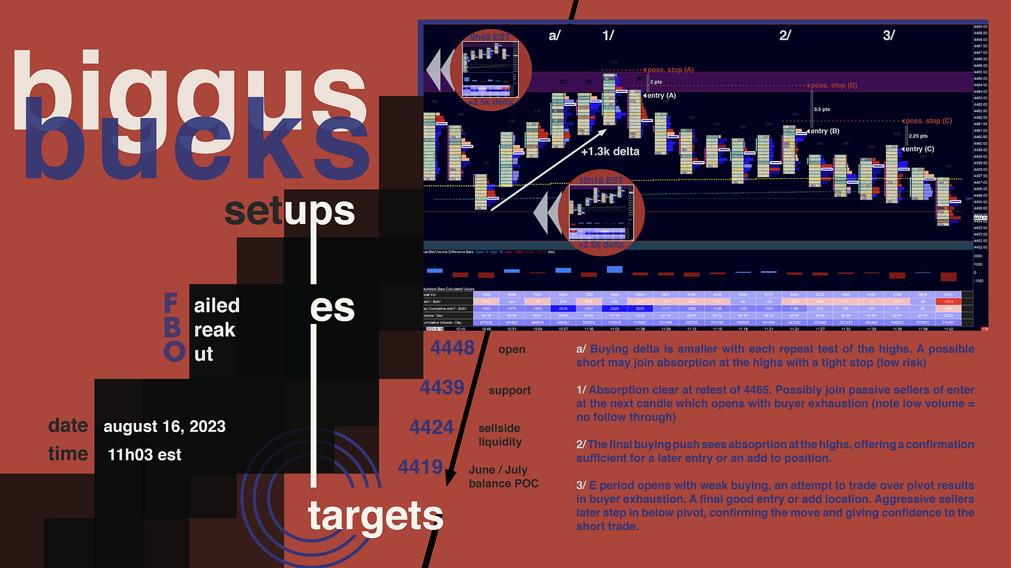 As a part of the trading educational library, I will be posting a setup reference manual of key core setups I use to trade every product (options, futures, stocks). There are four key setups, with variations on each. For example the ‘failed breakout’ pictured below and its corollary, you guess it…the ‘failed breakdown’. Today’s material is an example of the FBO; the manual will be shared in the coming weeks for free and a detailed course on each setup may be published at a later date.
