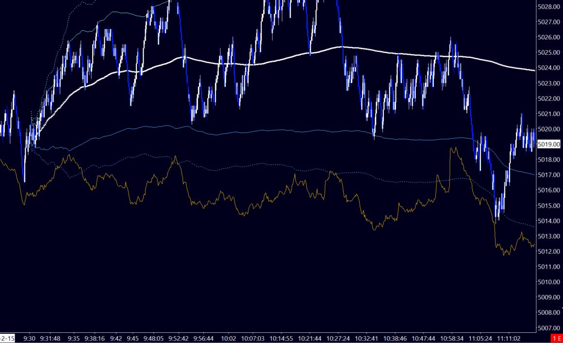 Indeed those buyers expected a payout and the telling sign was the open at the prior day’s highs. But whether I got out-strategized or not, we did not get out-risked. After all I made a point that “the 5012 short-term value level will play a critical role; time spent on either side will likely decide the direction of close for the week.” We spent the entirety of Thursday above this level, briefly dipping down into the 5013s before being bought up. As a follower pointed out, that dip was precisely at the RTH VWAP SD2. And here we are closing Thursday in the prior week’s upper distribution.