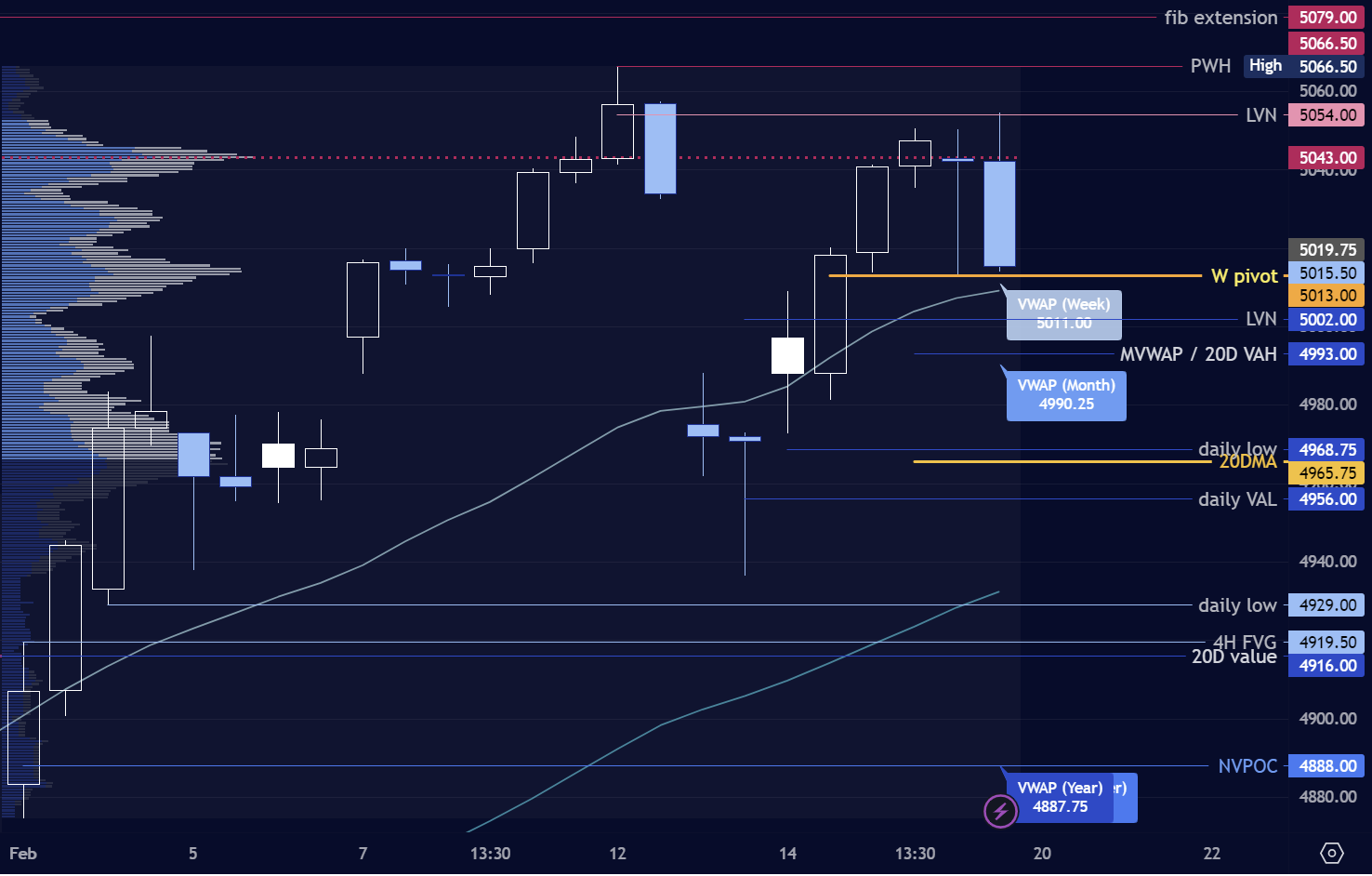 I’ll be considering 5012 LVN/Euro session high (as of writing) as pivot for the day’s session.