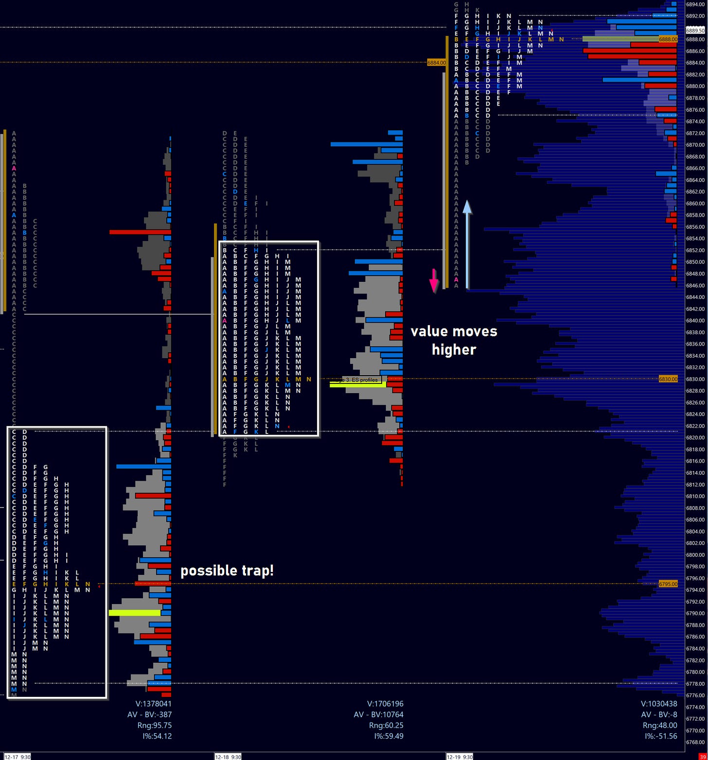 For a long, I’d want to lean against value (POC), or even against value area high on a following session. Now I have a strong thesis going forward. Let’s see what played out: