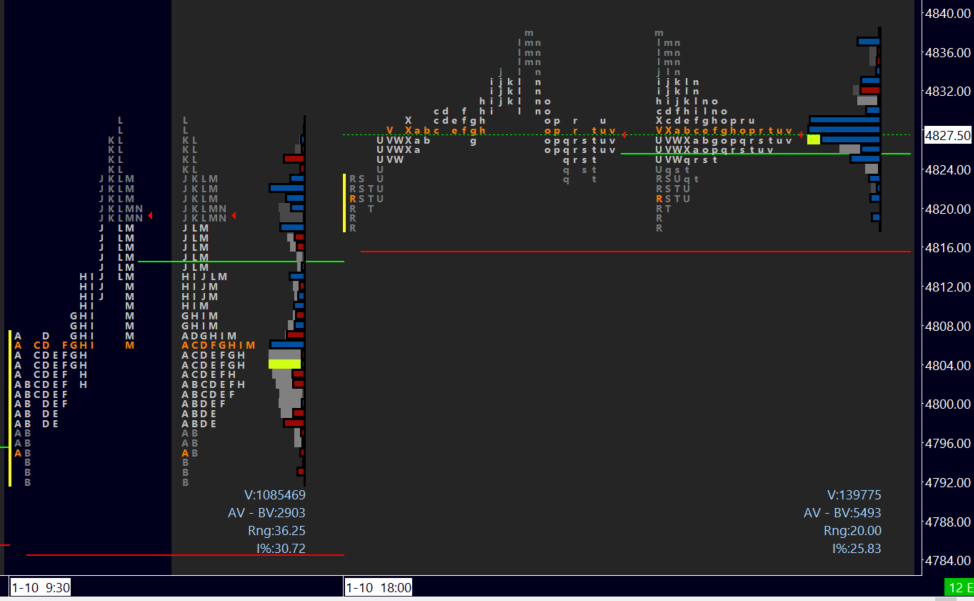 Sometimes my read is incomplete based on the available information. Regardless we have a plan and levels to account for all scenarios, with Wednesday pivot at 4798. My expectation was one of balance as I interpreted Tuesday’s close on the weaker side. However by open this should have been clear that the buyers were in a better position following a higher high and then low in the European session with reference to globex.