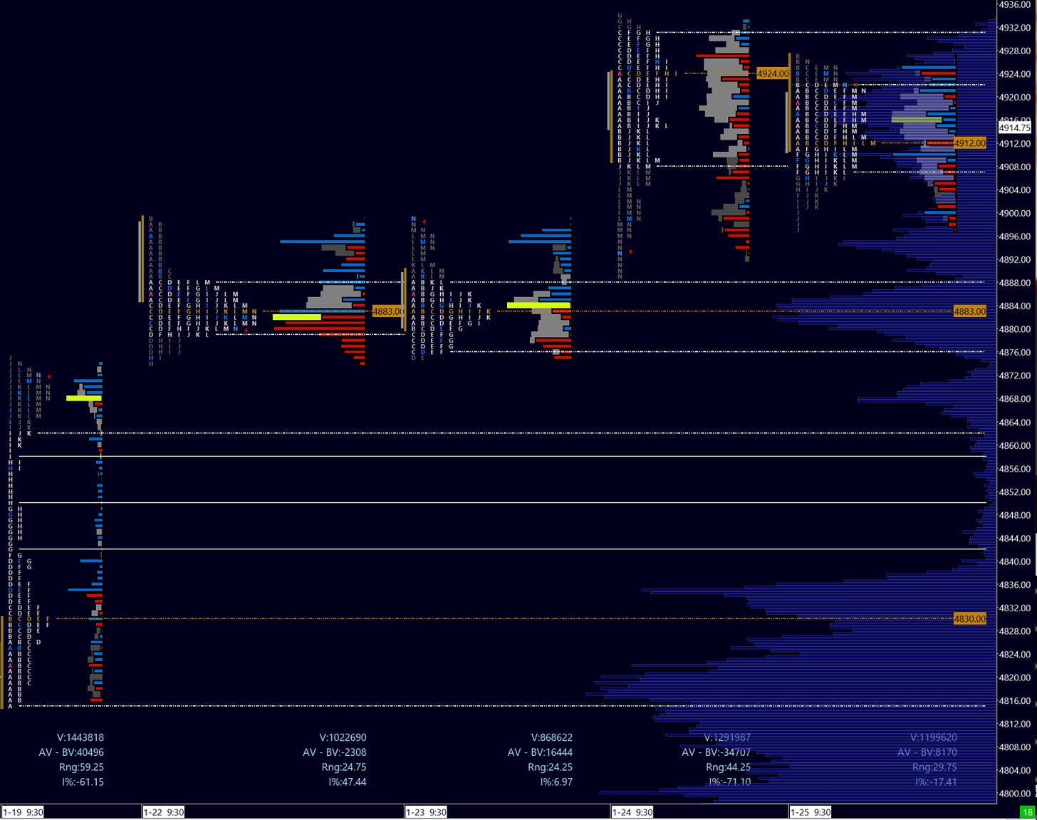 Thursday formed a near-perfect balance, closing near the highs after finding support at the PDC. There is some indecision but we are finding acceptance over the 4900 level. I do think there are some heavy sellers present given my read of the tape, but this does not mean we can’t go higher first.