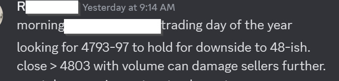 This was a great location for a short (and a point from our day pivot 4796), risking above 4800. This aligned with my thoughts before the open, although taking a little longer to play out than expected. However if there is no new market generated information (MGI) during the session plans remain valid.