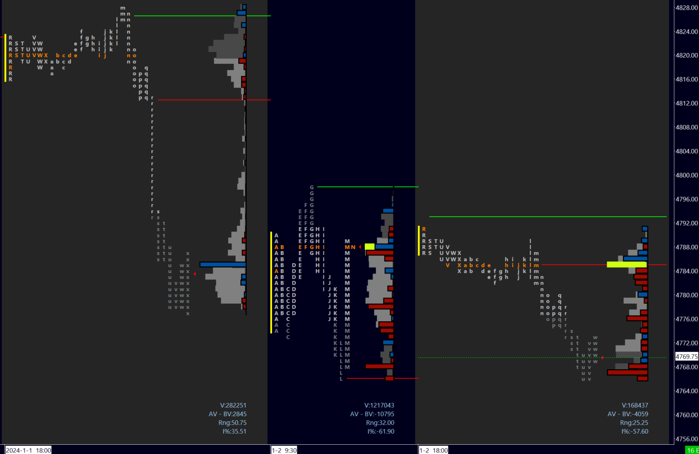 Pivot 4788. Some overnight weakness as of writing with the European open rejecting a reclaim of prior day closing levels. Rallies may potentially be sold. Watch the ONL/PDL for seller initiation which can open lower targets mentioned in Tuesday’s plan. Buyers want to see a traverse of prior day VA while sellers aim to effect a rejection of PDVAL. Plan levels largely unchanged.