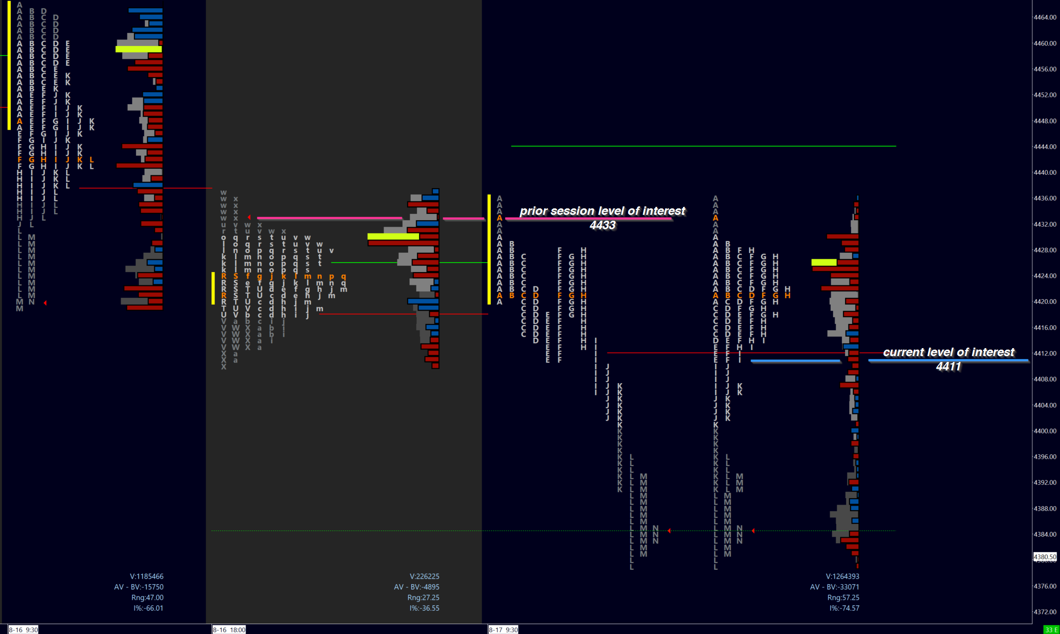 Image 2. Market has a memory. Prior levels of interest. Note the near touch of 4378 in RTH.