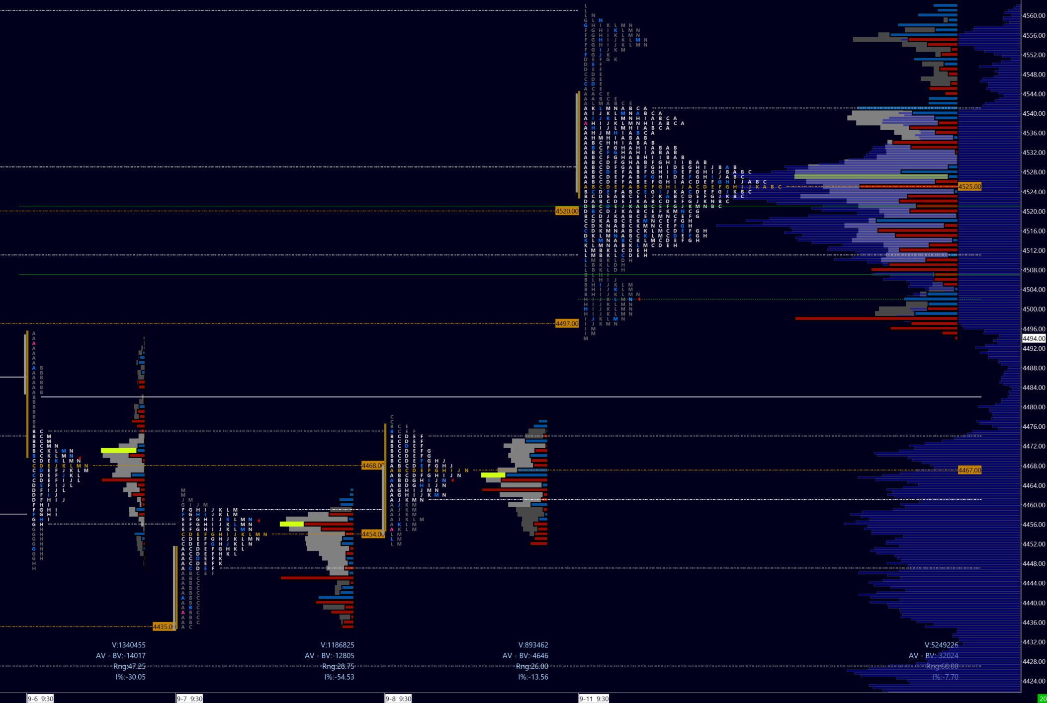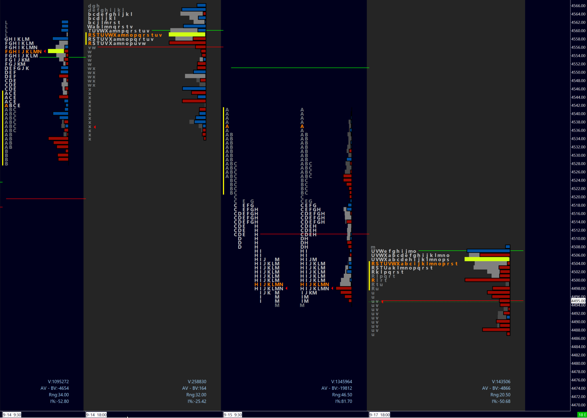Some softness overnight as of writing as inventory is net negative. A ‘p’ shape profile suggest absorption above 4504. Overnight trade was capped by 4507 which is no surprise as this level was shared ahead of Sunday ETH open as a level to watch.