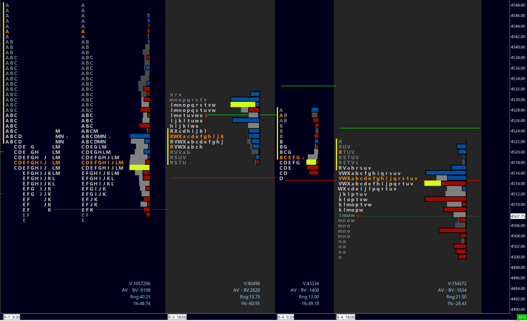 a) Longs closing above ONH will target Friday IB mid 4534 then 4543-48. Momentum above the latter (break of balance) is needed for the ultimate goal to test 4554. A break of that gates to higher targets. Buyers LIS for the day is 4485.