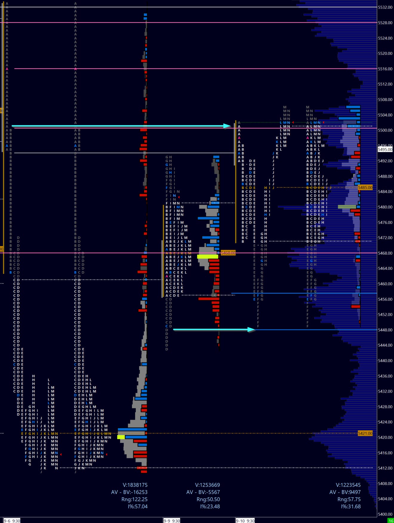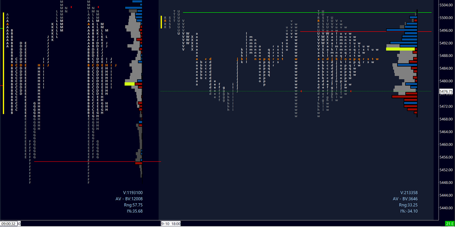 Regardless I will stick to this pivot 5493 for today. Once we close above, a secondary pivot may be 5503 which - in addition to representing the M period break to the upside on Tuesday - was also an area of heavy liquidity as observed in the delta bars in Image 2.