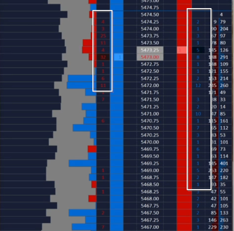 Now compare these two columns on recent bids and asks - note the small contract sizes from buyers (right side), as well as some opportunist sellers selling into the bid (left side). This isn’t indicative of buyer strength - more likely short-covering, or weak hands.