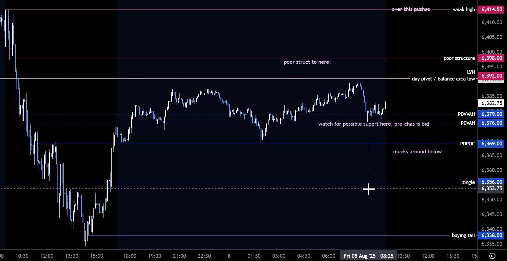 Nonetheless. I like these trades as they are fairly predictable, especially if mechanical references like the exact levels of poor structure, a daily high or low, or prior VAH/VAL are tested and react. This was my read on the open-test drive setup this Friday. Setting up a higher conviction trade.
