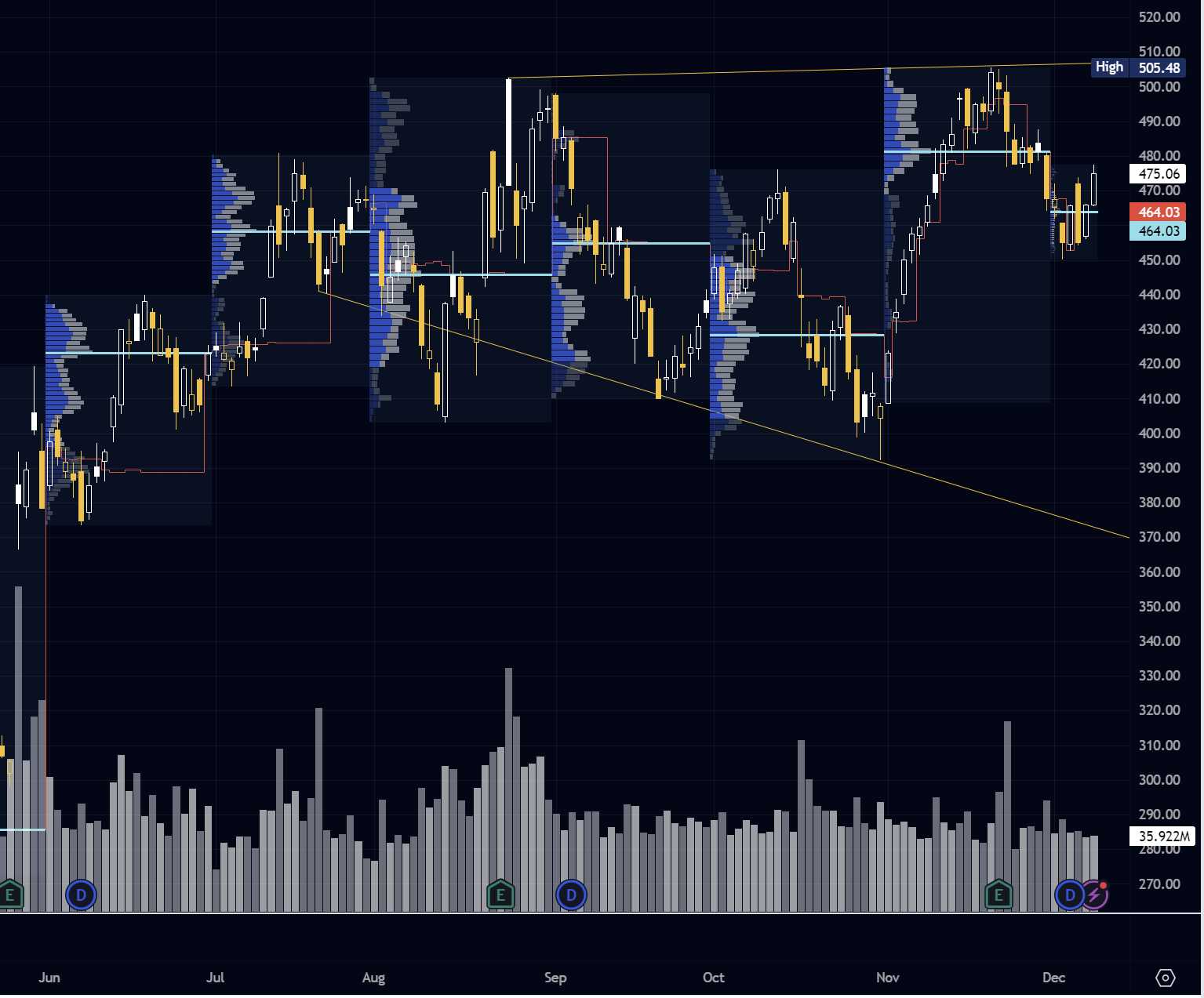 Image 2. Weekly structure. Note the triple volume distribution and continued balance.