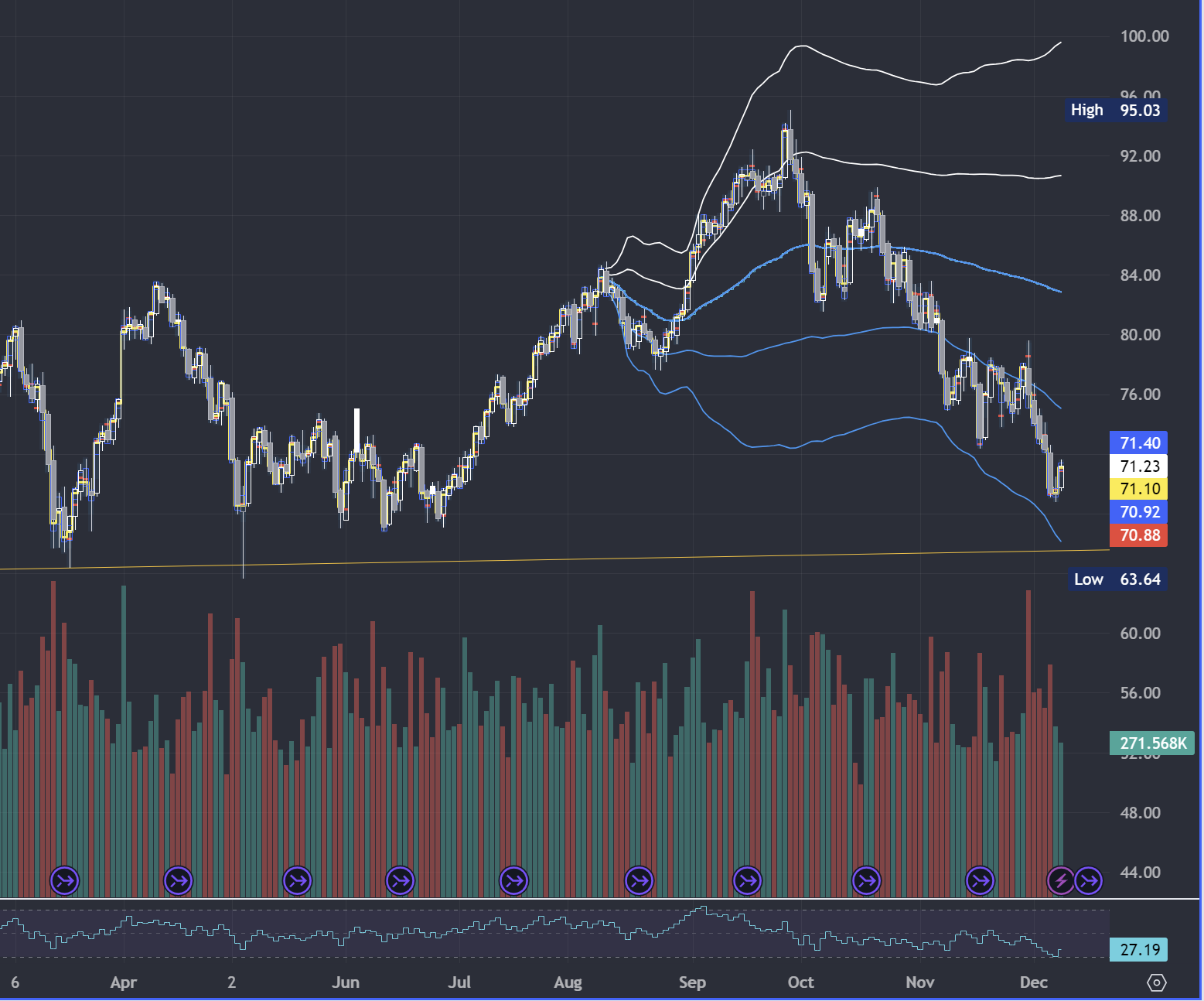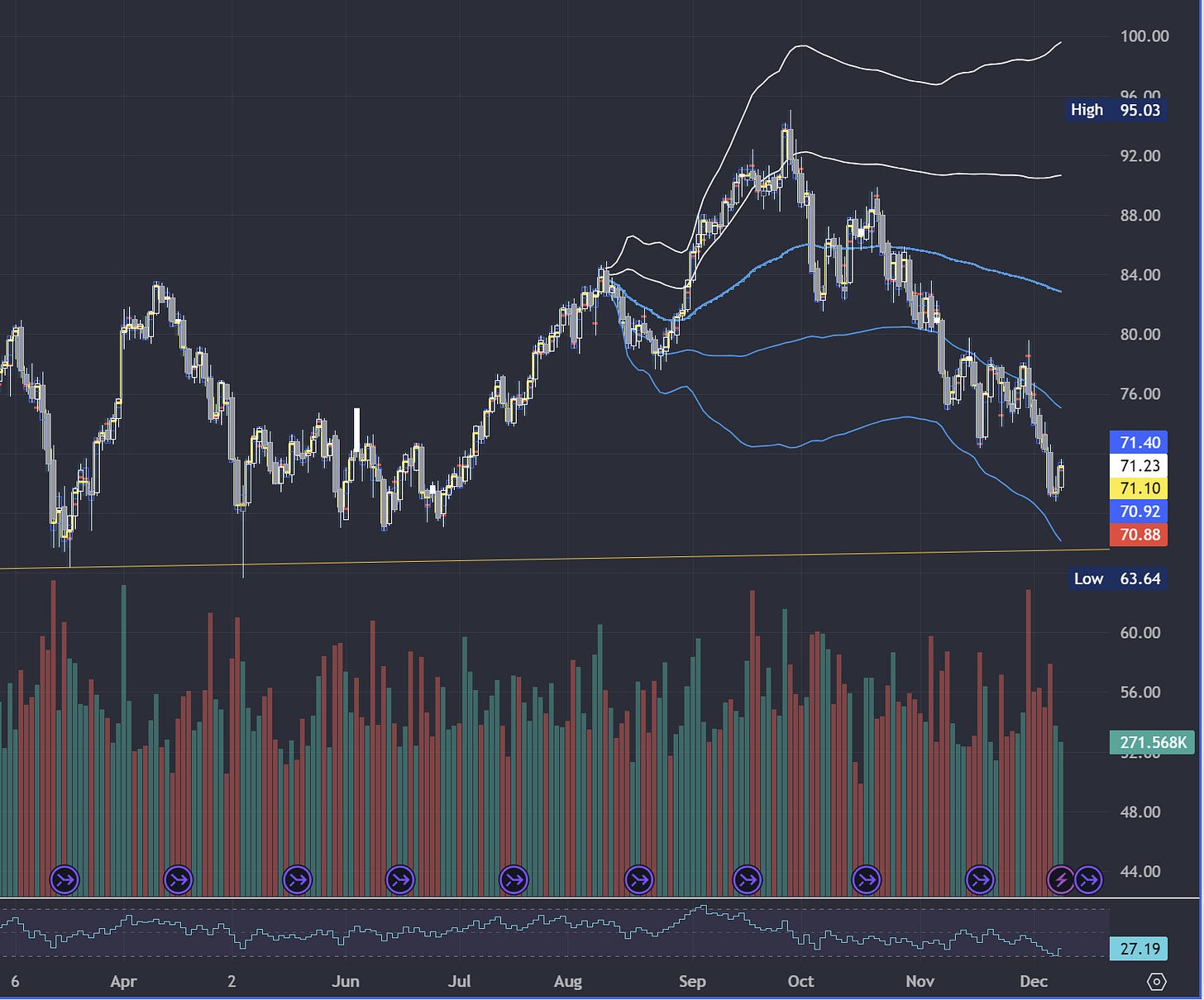 Image 3. A crude look, approaching longer term support (yellow line)
